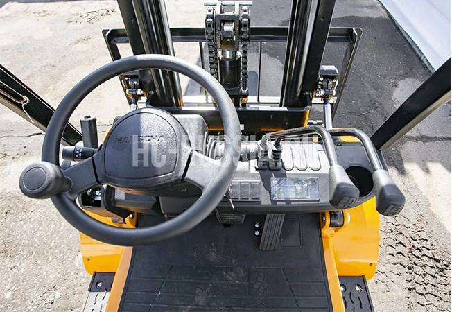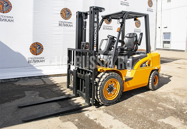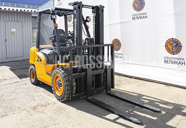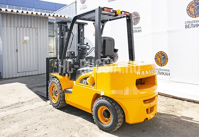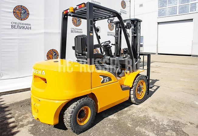 Погрузчик вилочный HANGCHA CPQD35N-RW22 используется для подъема и перемещения товаров массой до 3500 кг. Оборудован мотором NISSAN K25 мощностью 37,4 кВт. Работает на бензине, бак для топлива вмещает 70 л. Для защиты оператора от падения груза установлена стальная решетка. На приборной панели расположены рычаги управления. Для передвижения оборудованы две пары колес. Установлен тормозной механизм барабанного типа. Возможно преодоление наклонной поверхности до 15%. Применяется на строительных, производственных и промышленных объектах.