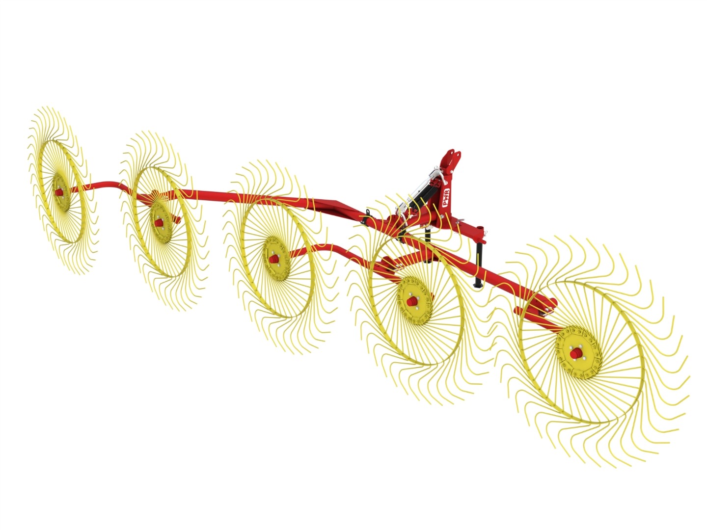 Грабли PWR 5 имеют широкую регулировку угла атаки и традиционно высокую конструктивную прочность. Грабли устанавливаются на заднюю навеску трактора, перевод машины из рабочего положения в транспортное и наоборот осуществляется оператором. Агрегатируются с тракторами тягового класса трактора от 0,6 тс. отечественного и импортного производства. Количество граблин в колесе 40 шт.